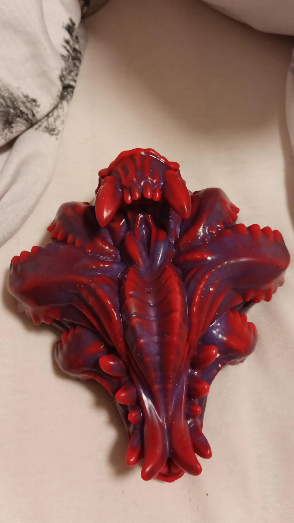 This is by far the most beautiful and well-crafted toy I own. I got the signature pour coloration and the pictures don't do it justice; it's amazing how it's able to incorporate so many different colors and blends into such a cohesive pour, it's truly a piece of art. I also opted for the bullet vibrator upgrade, and the cravity in the back of the toy is small enough to secure the toy in place while also having enough wiggle room to remove it without compromising the integrity of the grinder. My only complaint is that I wish it was a bit more firm, maybe a medium rather than extra soft -- that way I'd be able to appreciate all the little bumps and ridges of the design better. Overall, I'm extremely happy and will be on the lookout for more unique alien/fantasy/monster designs from this seller!!!