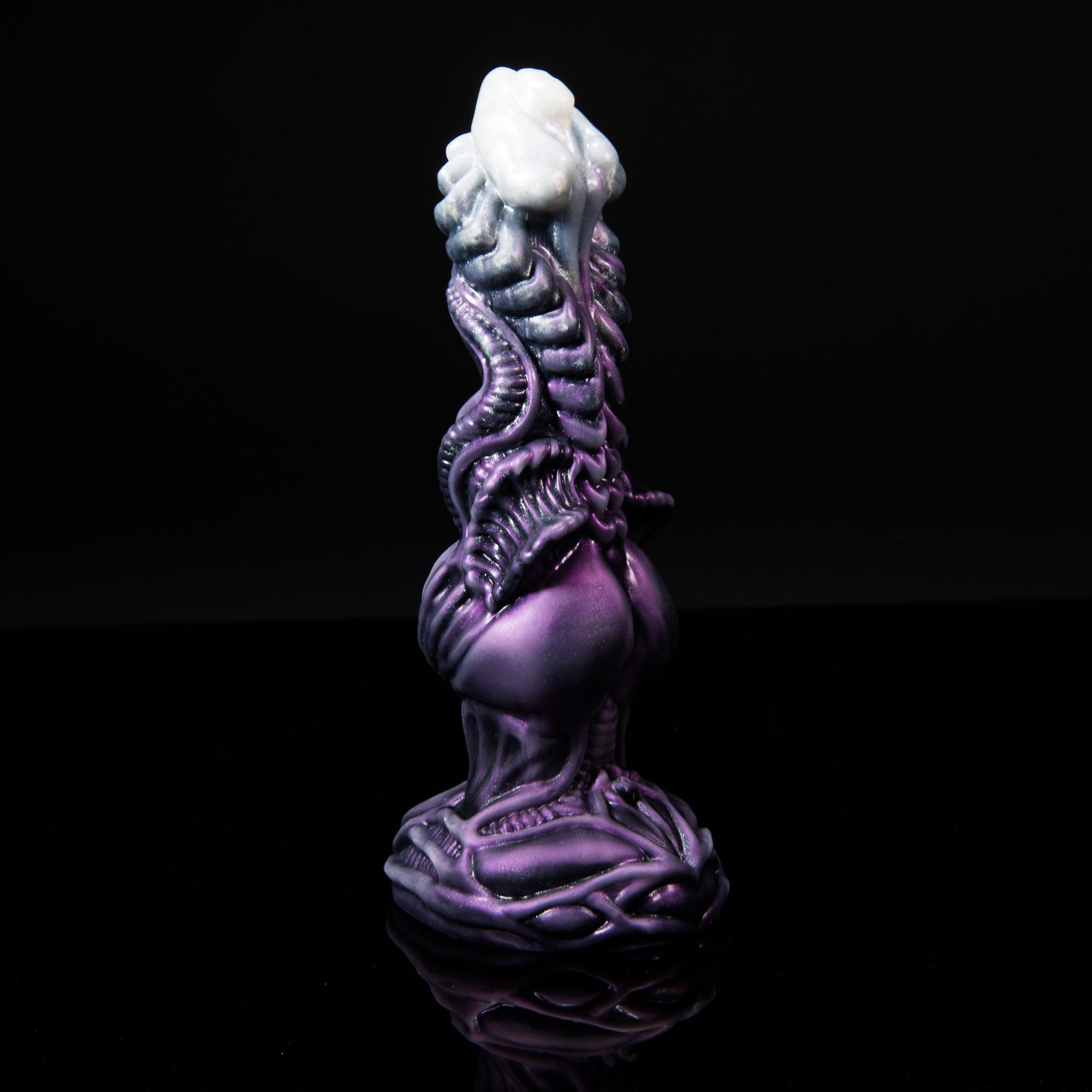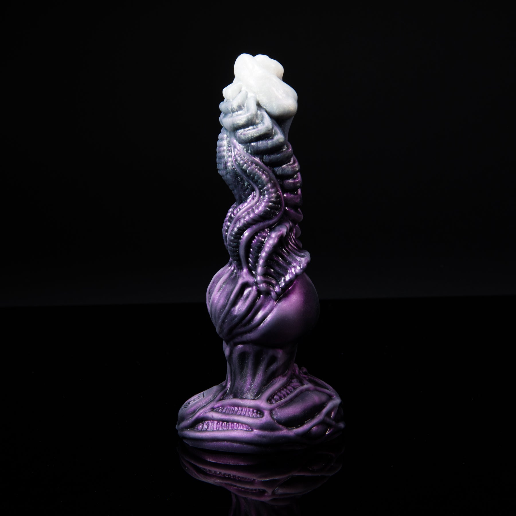 Ribbed and sinister elements flow through this creation’s design, equal parts sculpture and temptation. Poured by hand in body-safe platinum silicone, The Xenomorph captures the essence of alien desire: cold, perfect, and unrelentingly curious about your limits.