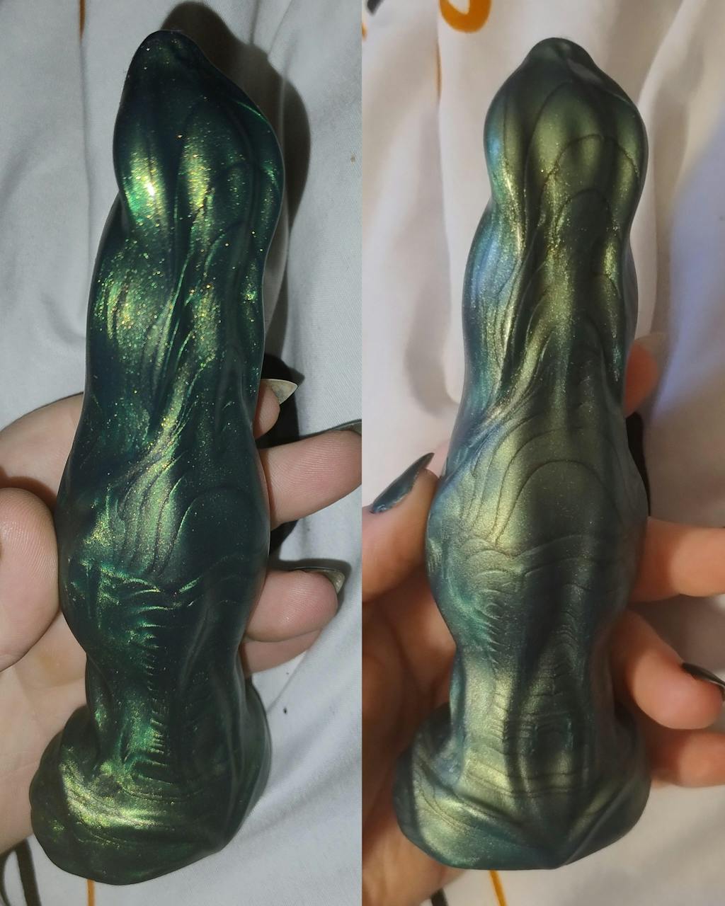 All of our toys are individually handmade using body-safe silicone. Because each piece is crafted by hand, subtle variations or small surface imperfections may occur. These are a natural part of the handmade process and a sign that your toy is truly one of a kind.
